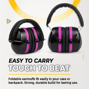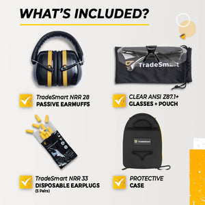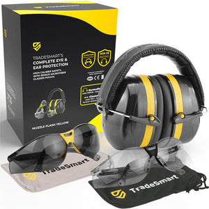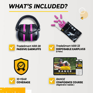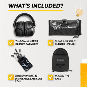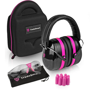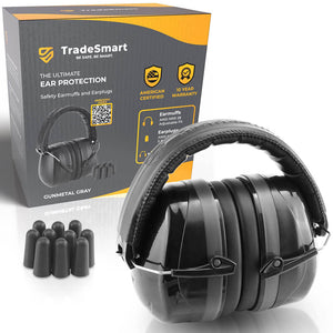 TradeSmart Safety earmuffs are NRR 28 certified, reducing harmful gunfire noise while keeping range communication clear.